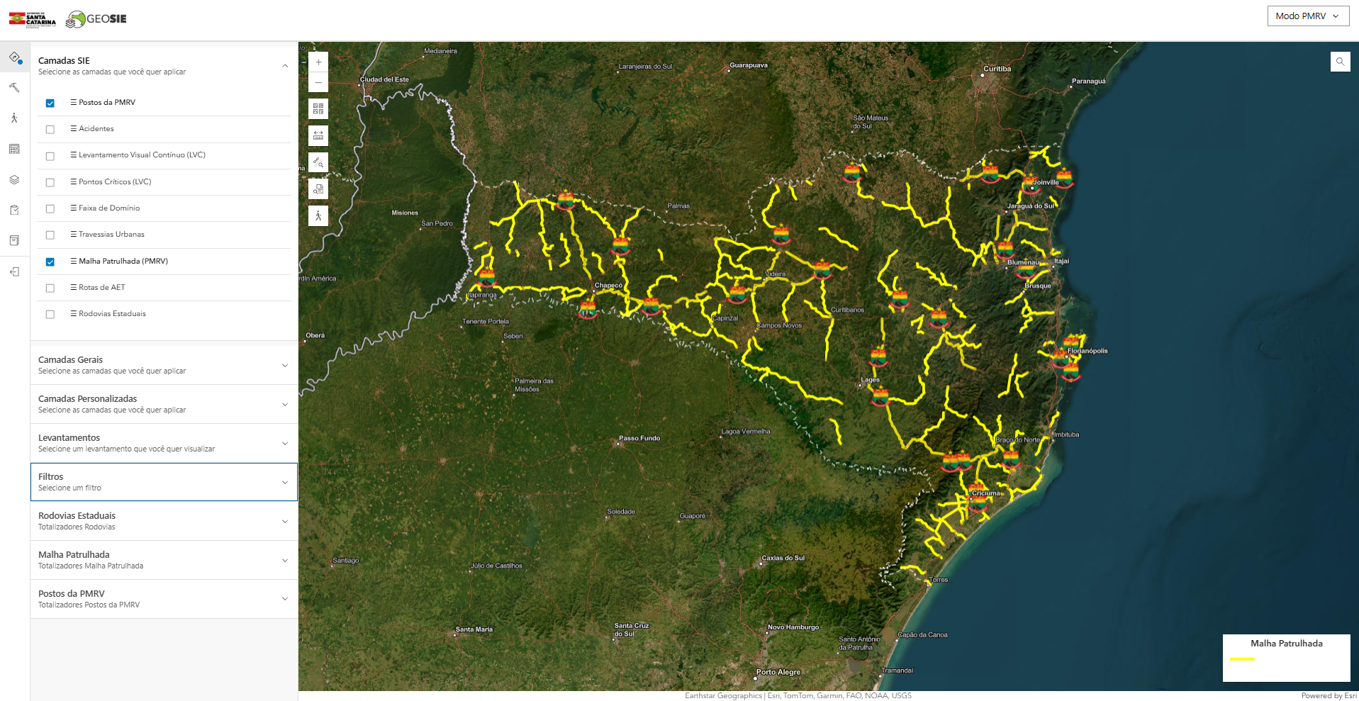 - A camada “Malha Patrulhada (PMRV)” é acionada;